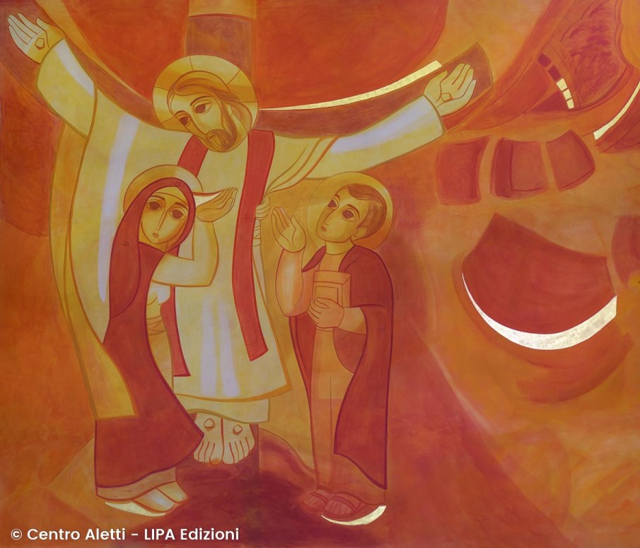 Junto à cruz de Jesus estavam de pé sua mãe e a irmã de sua mãe, Maria de Cléofas,e Maria Madalena.