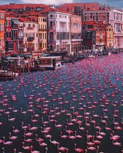 Tinha para mim que a imagem dos flamingos, que foram confundidos com cisnes cor-de-rosa, entrando pela baía de São Marcos e chegando à altura da estação de trem de Veneza, era fake. A montagem foi criada pela fotógrafa e artista visual russa Kristina Makeeva e não passou de um sonho, de um desejo de ver a cidade mais bonita do que ela é, o que beira o impossível.