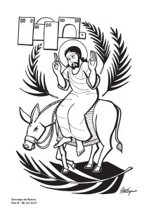+ Com a imaginação recrie o cenário evangélico: a cidade de Jerusalém, o grande Templo, a diversidade de pessoas… Com a chegada de Jesus, montado em um burrinho e uma grande multidão, faça-se presente, procurando olhar as pessoas, escutar o que elas dizem, observar o que elas fazem…