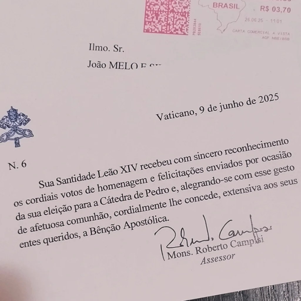 Não sabíamos se teríamos alguma resposta. No dia 08 de julho, fomos surpreendidos por uma correspondência da Nunciatura Apostólica, uma espécie de embaixada do Vaticano no Brasil.