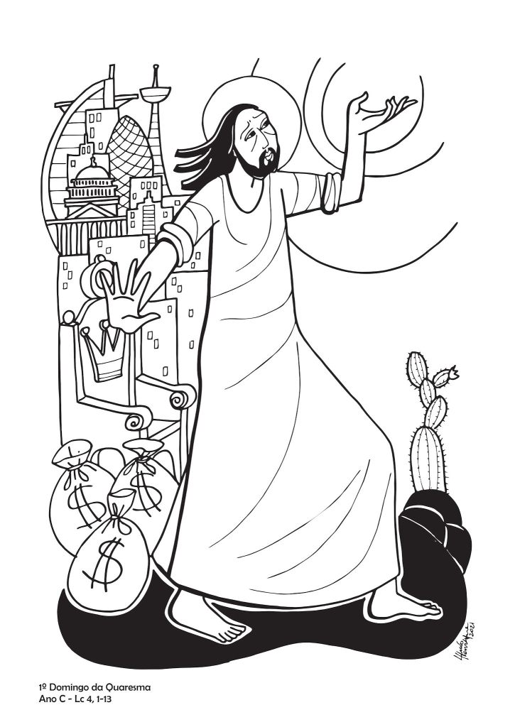 A cena da tentação de Jesus foi construída para refletir a luta interior do homem pela liberdade. Jesus, o novo Adão, é tentado, como todo ser humano, a acomodar- se aos princípios deste mundo, a seus valores materiais, à segurança que nos proporciona o dinheiro, à satisfação que nos dá o poder, descuidando dos valores do Reino, que são a verdade, a justiça, o amor e a paz.